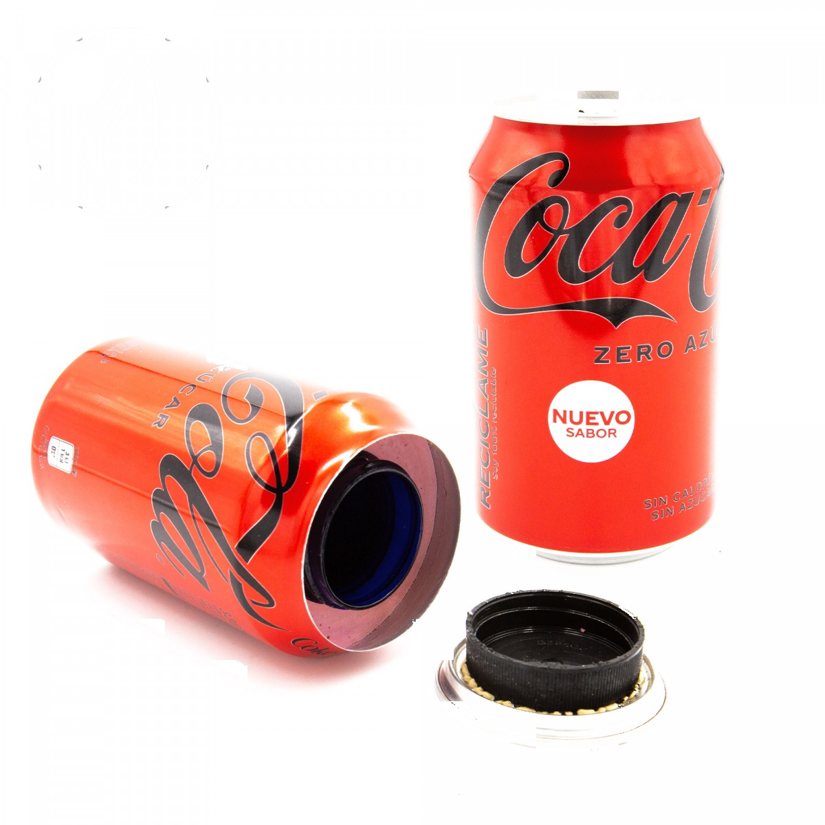 Plastic Fantastic Dosentresor Coca Cola Zero : objet du quotidien truqué qui dissimule un compartiment caché dans son socle ou son couvercle. Vu de l’extérieur, l’imitation est parfaite — poids, couleur, étiquetage et format identiques au produit original.