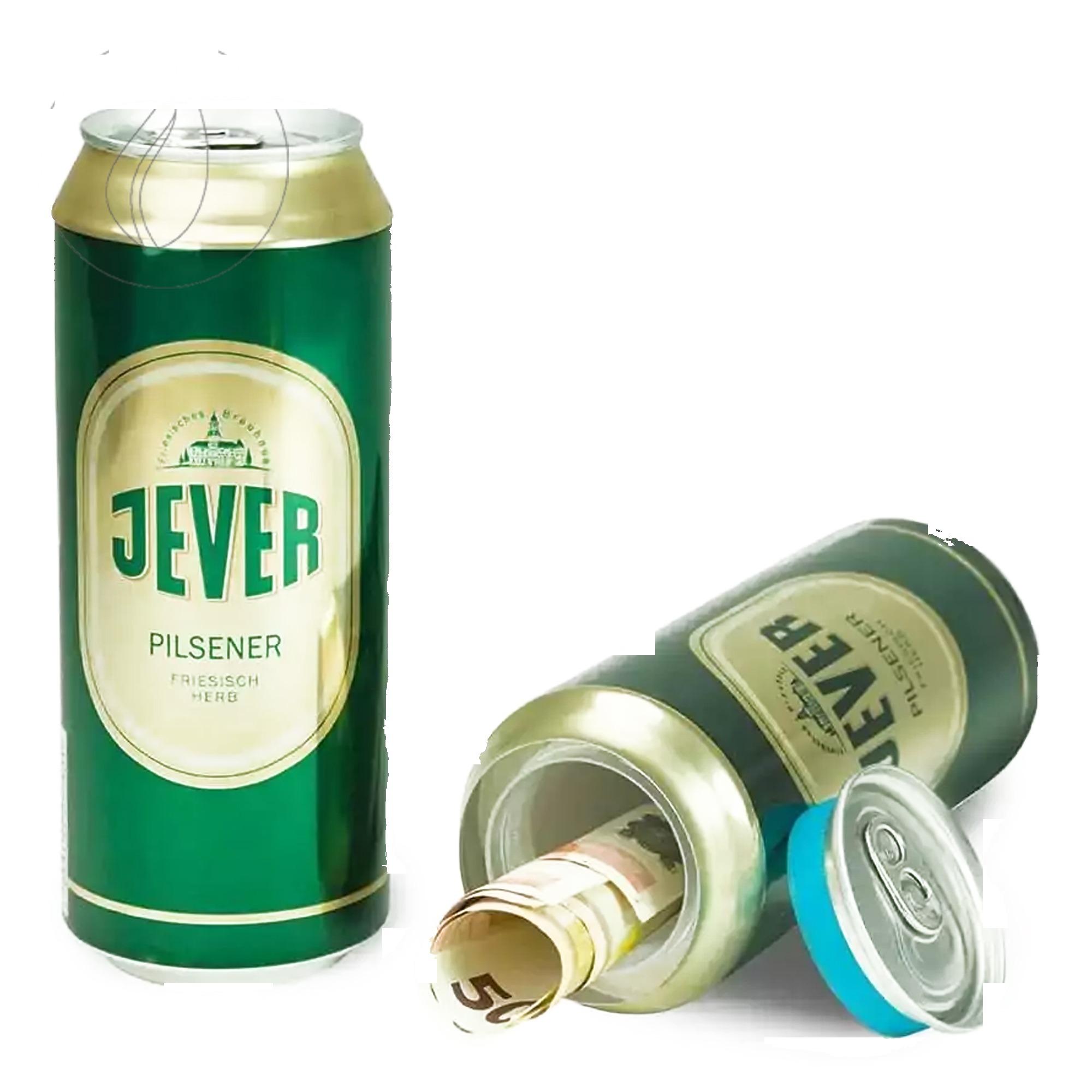 Plastic Fantastic Dosentresor Jever Pilsner : objet du quotidien truqué qui dissimule un compartiment caché dans son socle ou son couvercle. Vu de l’extérieur, l’imitation est parfaite — poids, couleur, étiquetage et format identiques au produit original.