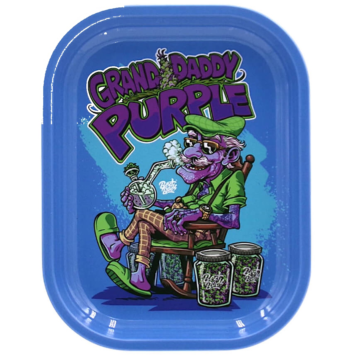 Plateau à rouler – Best Buds Thin Box Rolling Tray with Storage Grand Daddy Purple — Plateau à rouler Best Buds en métal émaillé. Bords arrondis, impression haute définition, nettoyage facile.