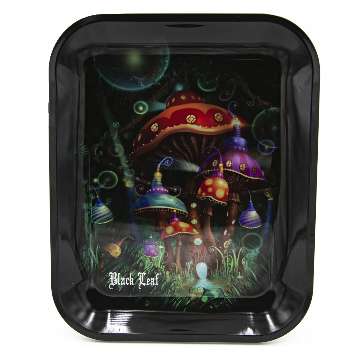 Plateau à rouler – Black Leaf Rolling Tray L Mushroom 340 x 270mm — Plateau à rouler Black Leaf en métal émaillé. Bords arrondis, impression haute définition, nettoyage facile.