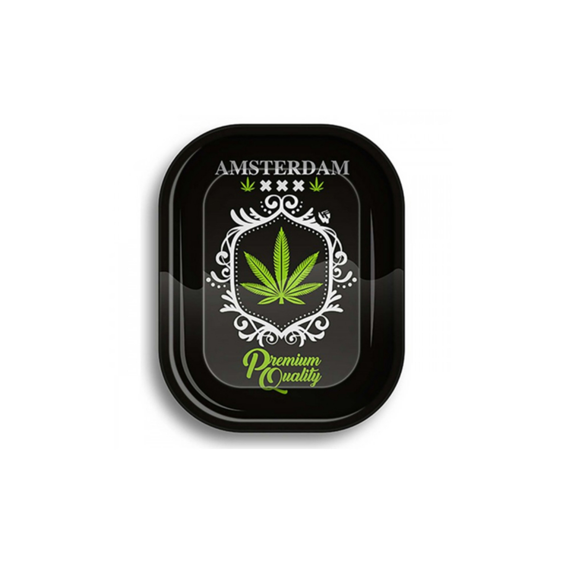 Plateau à rouler – Black Leaf Rolling Tray S Amsterdam 140 x 180mm — Plateau à rouler Black Leaf en métal émaillé. Bords arrondis, impression haute définition, nettoyage facile.