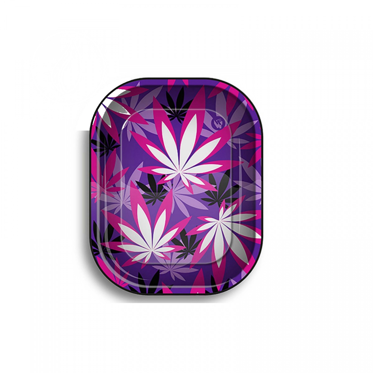 Plateau à rouler – Black Leaf Rolling Tray S Pink Leaves 140 x 180mm — Plateau à rouler Black Leaf en métal émaillé. Bords arrondis, impression haute définition, nettoyage facile.