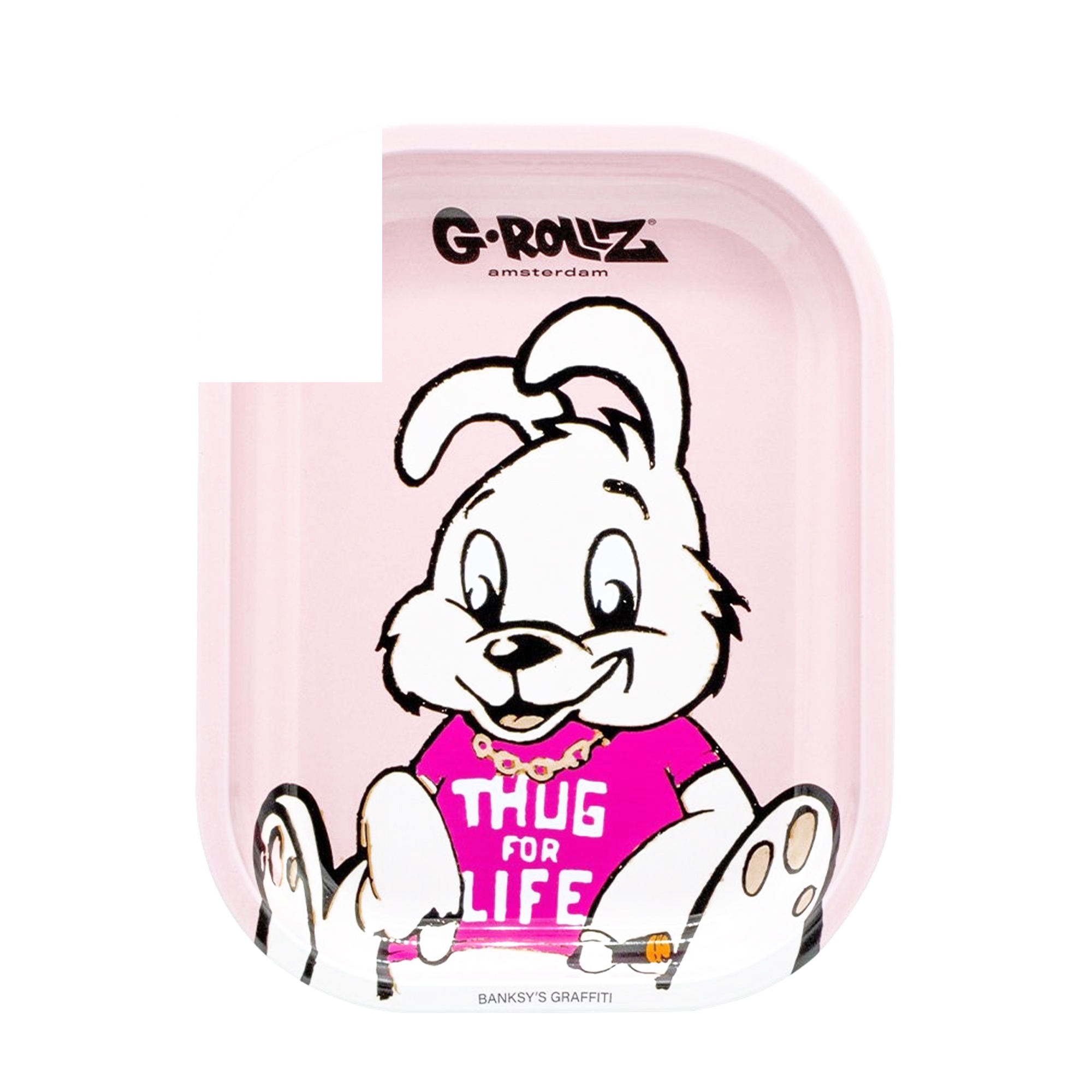 Plateau à rouler – G-Rollz Banksy Thug For Life S — Plateau à rouler G-Rollz Collection Banksy officielle. Art du street artist culte reproduit en licence exclusive sur métal émaillé premium.