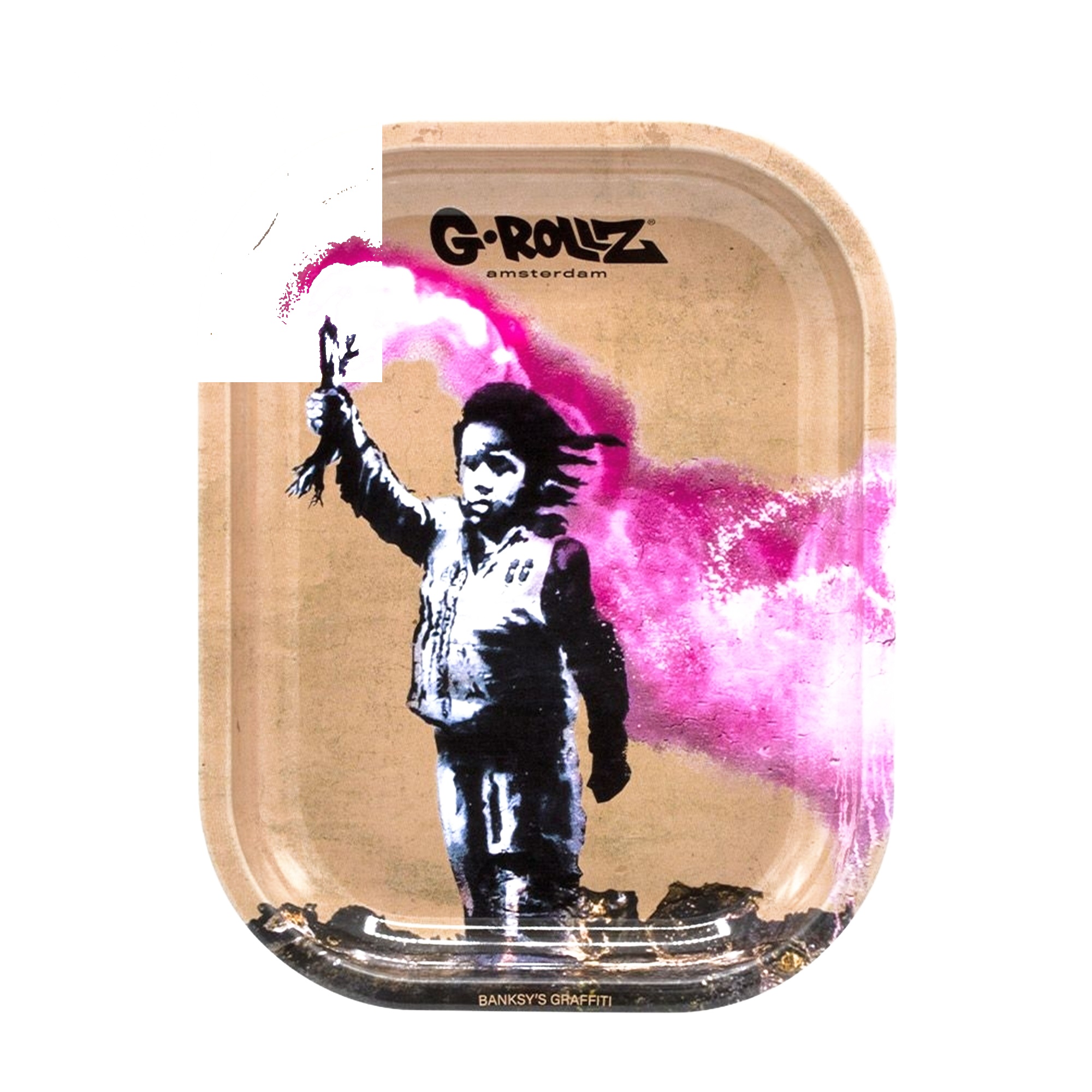 Plateau à rouler – G-Rollz Banksy Torch Boy S — Plateau à rouler G-Rollz Collection Banksy officielle. Art du street artist culte reproduit en licence exclusive sur métal émaillé premium.