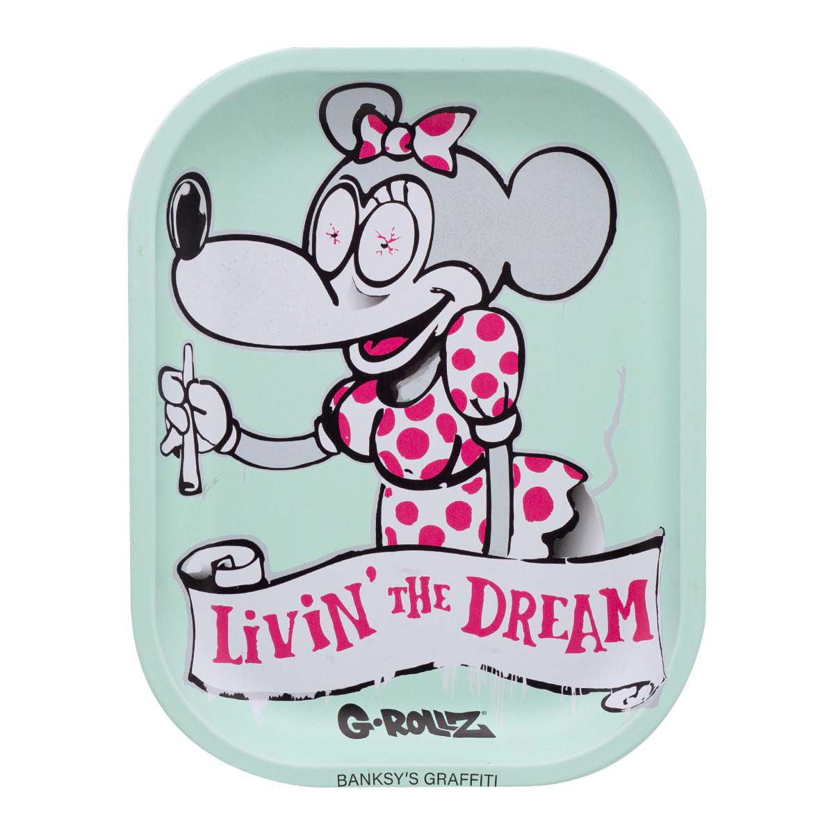 Plateau à rouler – G-Rollz Rolling Tray S Banksy’s Livin the Dream 140 x 180mm — Plateau à rouler G-Rollz Collection Banksy officielle. Art du street artist culte reproduit en licence exclusive sur métal émaillé premium.
