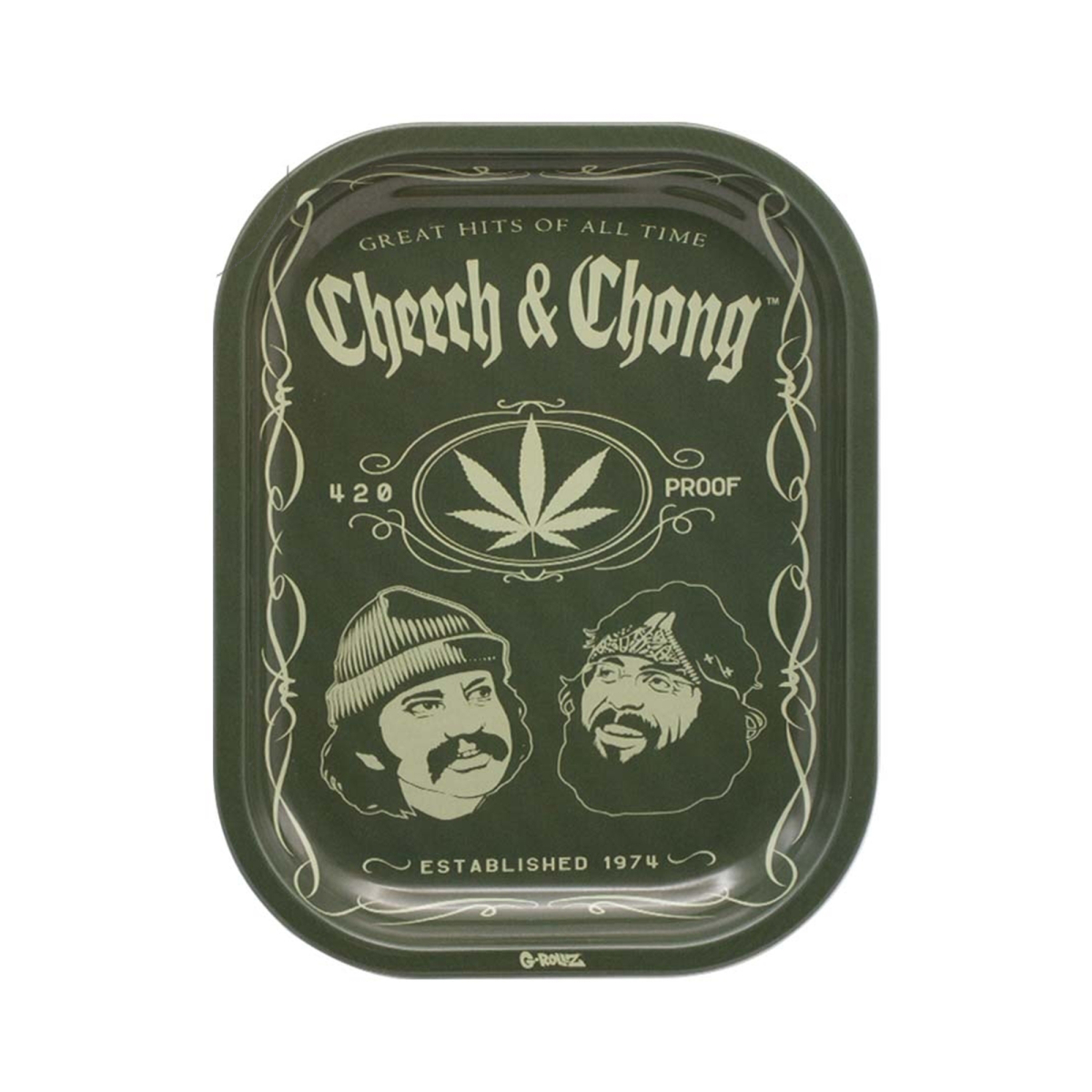 Plateau à rouler – G-Rollz Rolling Tray S Cheech and Chong Greatest Hits 140 x 180mm — Plateau à rouler G-Rollz Collection Banksy officielle. Art du street artist culte reproduit en licence exclusive sur métal émaillé premium.