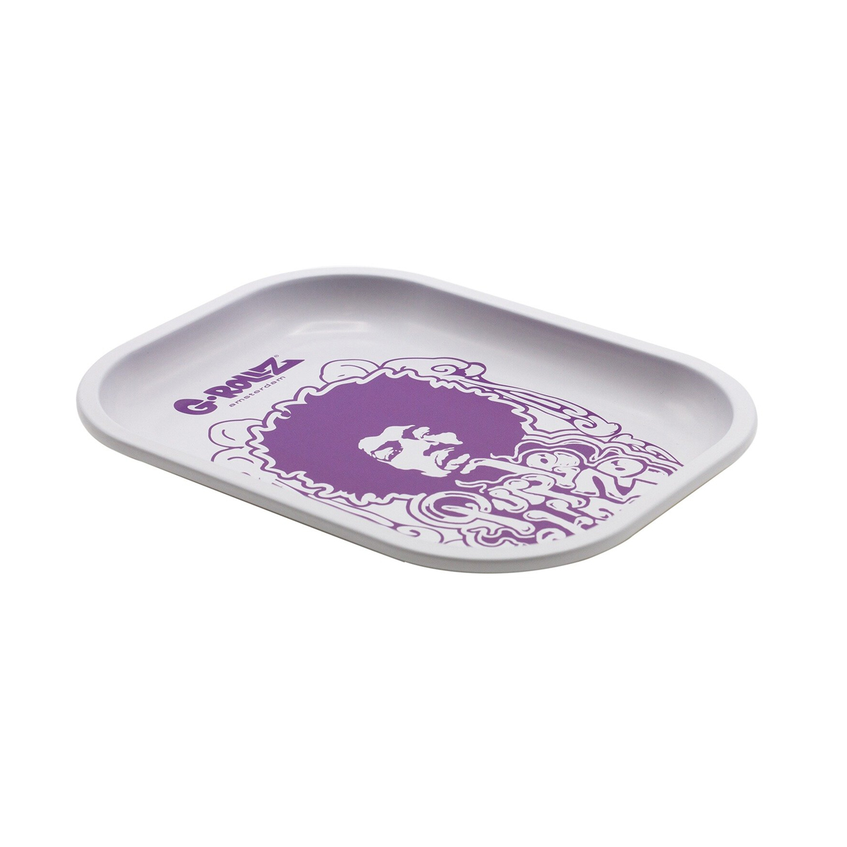 Le format S G-Rollz (125 × 175 mm) est le plus polyvalent. Assez grand pour rouler un joint confortablement, assez compact pour glisser dans un sac ou un tiroir. Le métal émaillé supporte les chocs, le nettoyage et même le passage en lave-vaisselle. Un plateau qui dure des années.