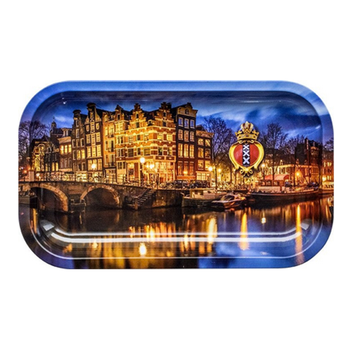 Plateau à rouler – Kulu Rolling Tray M Amsterdam Canal 160 x 270mm — Plateau à rouler Kulu : métal émaillé premium, design exclusif, impression UV durable. Production européenne, finitions soignées.