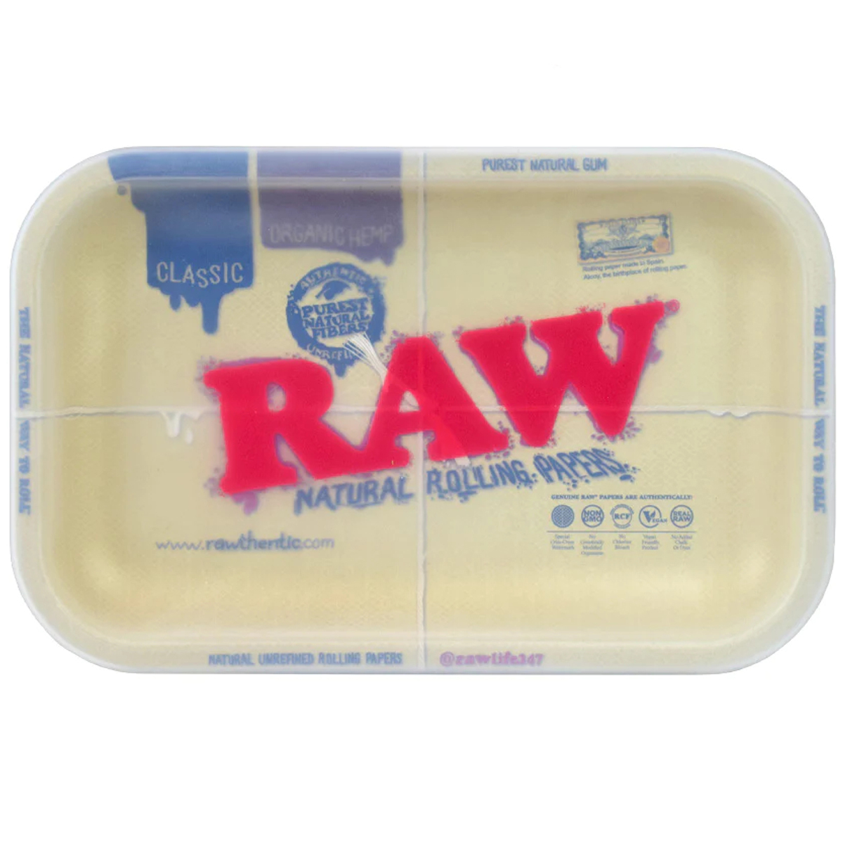 Plateau à rouler – RAW Rolling Tray M with Silicone Cover 175 x 275mm — Plateau à rouler RAW, signé par la marque de rolling papers la plus authentique au monde. Métal embossé RAW logo, design iconique brun naturel, qualité fabrication garantie. Le plateau préféré des rollers du monde entier.