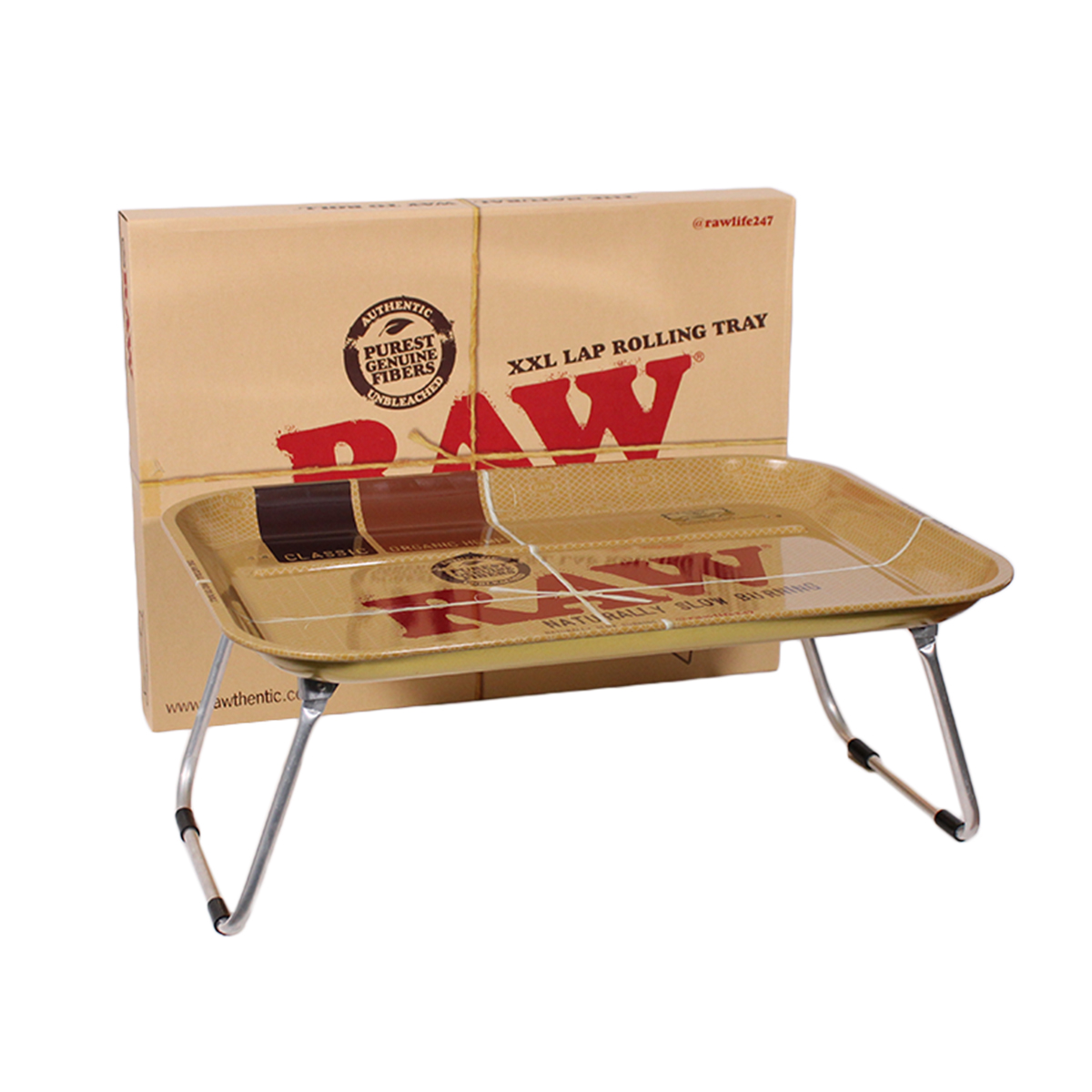 Plateau à rouler – RAW XXL Lap Rolling Tray 380 x 500mm — Plateau à rouler RAW officiel : métal embossé, logo RAW iconique, finition naturelle marron. La référence authentique des rolling papers.