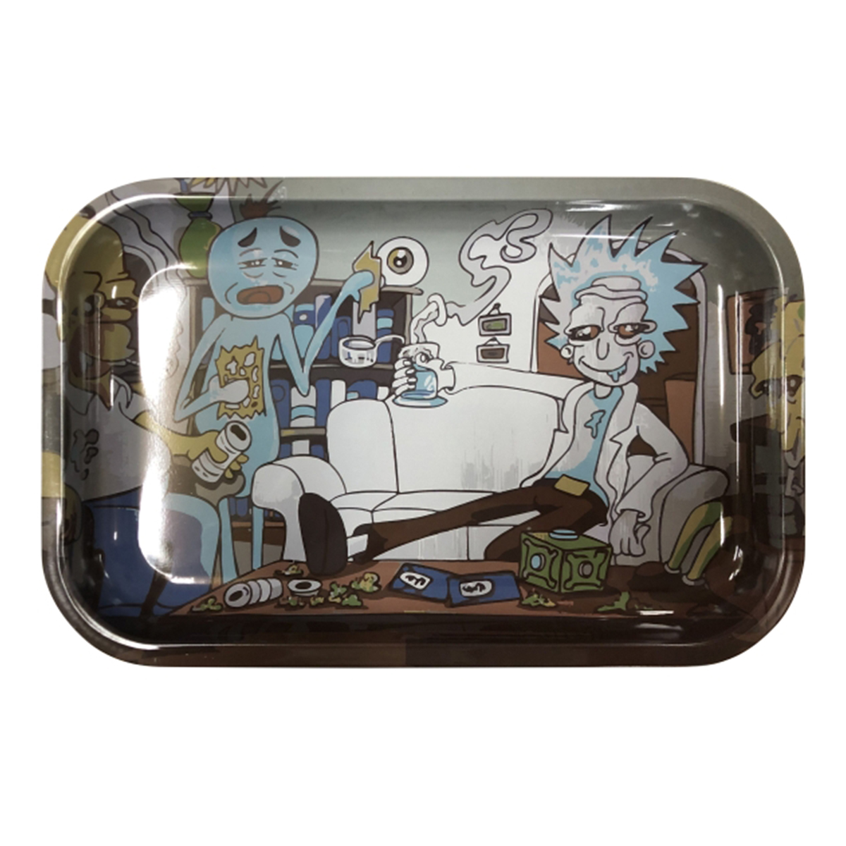 Plateau à rouler – Rolling Tray M Rick and Morty Simpsons 175 x 275mm — Plateau à rouler Plantasur en métal émaillé. Bords arrondis, impression haute définition, nettoyage facile.