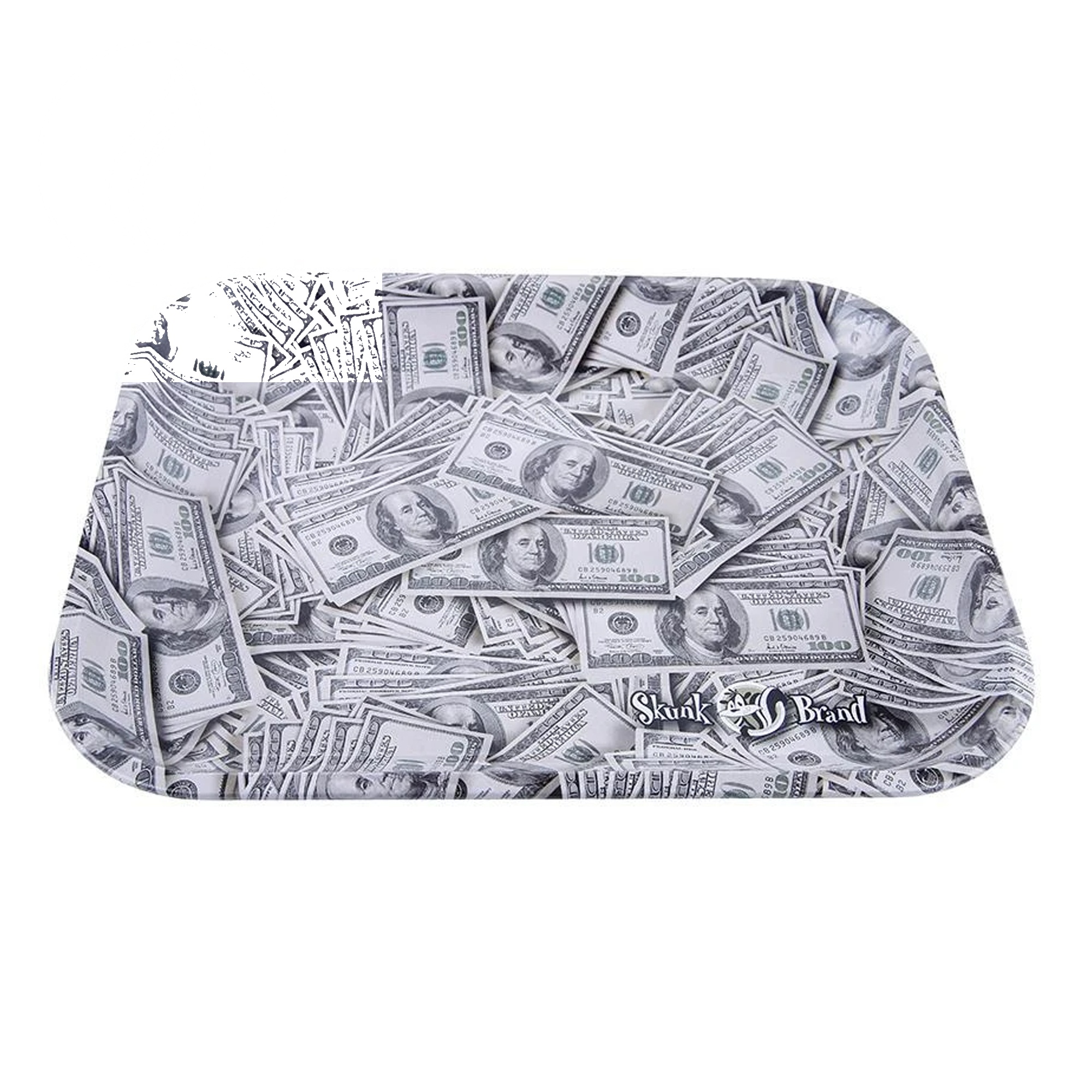 Plateau à rouler – Skunk Brand Rolling Tray Cash 275 x 340mm — Plateau à rouler Skunk Brand. Métal émaillé qualité professionnelle, impression haute définition, bords arrondis pour une utilisation sûre.
