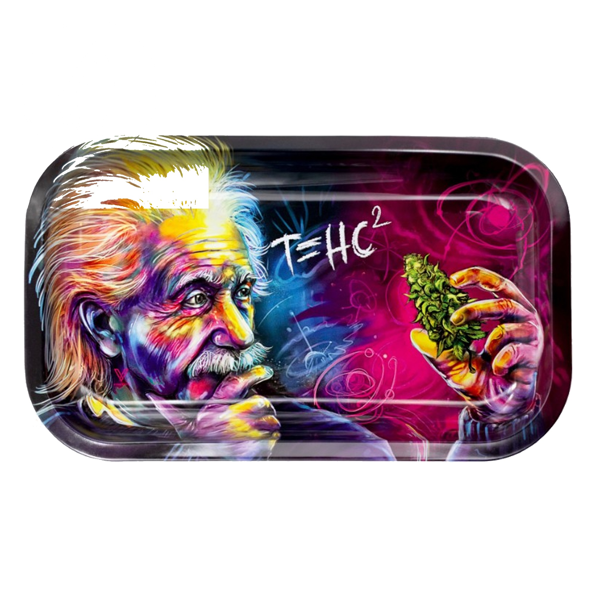 Plateau à rouler – V Syndicate Einstein — Plateau à rouler V Syndicate : métal émaillé, impression UV haute définition, bords arrondis. Design officiel V Syndicate. Fabrication qualité professionnelle.