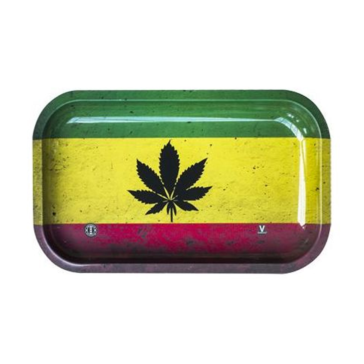 Plateau à rouler – V-Syndicate Rolling Tray M Rasta Leaf 160 x 270mm — Plateau à rouler V Syndicate : métal émaillé, impression UV haute définition, bords arrondis. Design officiel V Syndicate. Fabrication qualité professionnelle.