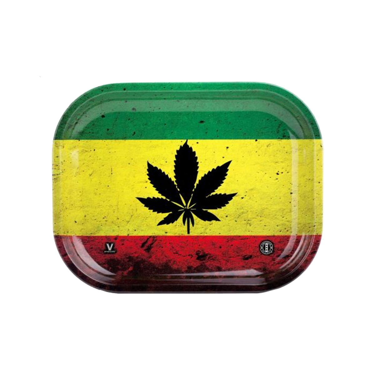 Plateau à rouler – V-Syndicate Rolling Tray S Rasta Leaf 140 x 180mm — Plateau à rouler V Syndicate : métal émaillé, impression UV haute définition, bords arrondis. Design officiel V Syndicate. Fabrication qualité professionnelle.