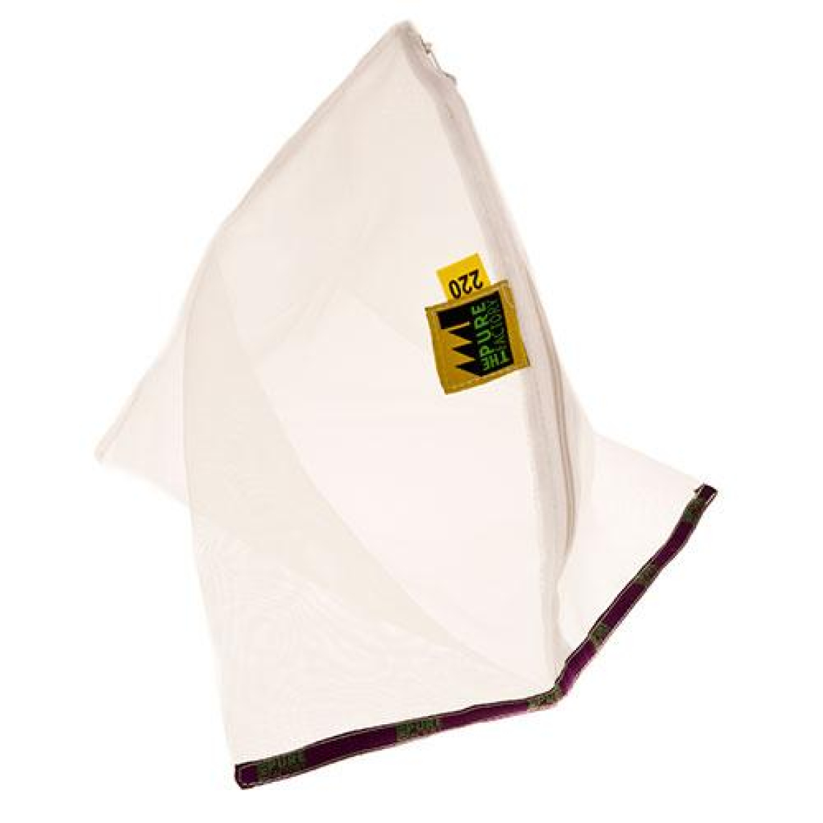Sac filtrant Pyramid Bag de 220 microns Pure Factory. C’est le sac de travail principal utilisé pour contenir la matière végétale lors de l’extraction à l’eau glacée.