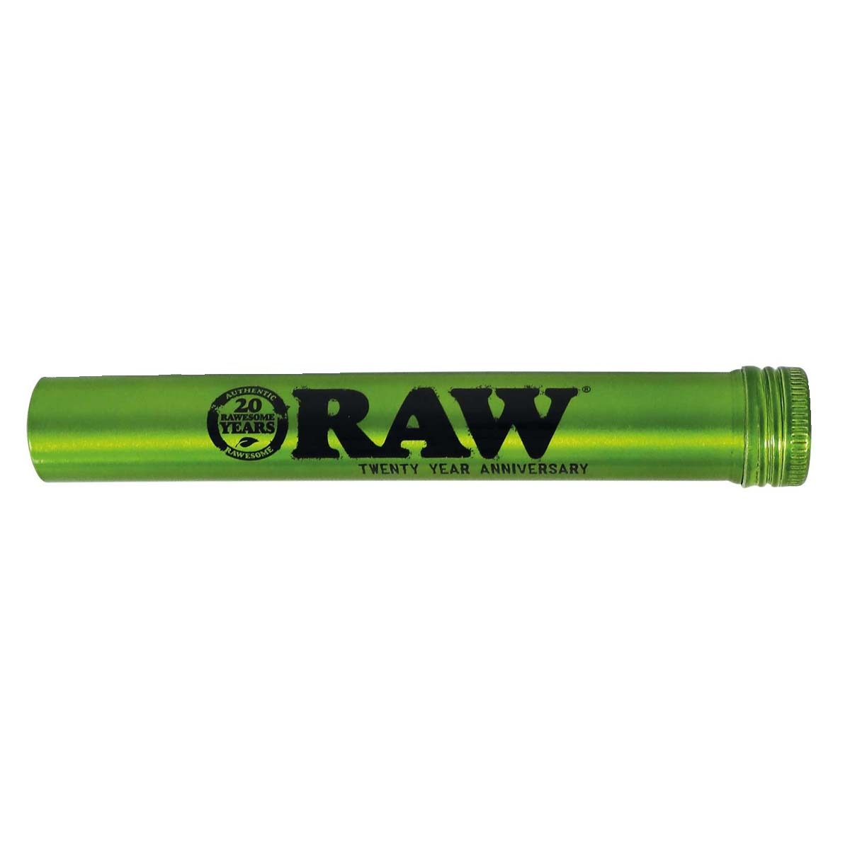 RAW RAW Retro Metal Tube Green : étui de transport pour pré-roulés, papiers ou tabac. Protège le contenu de l’écrasement, de l’humidité ambiante et limite la diffusion d’odeurs grâce à un joint d’étanchéité ou un capuchon vissé.