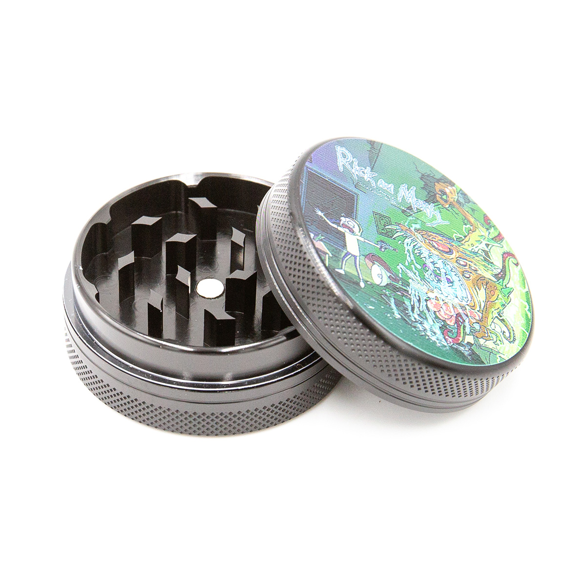 Grinder sous licence officielle Rick and Morty (Adult Swim). Illustrations sérigraphiées de la série animée sur le couvercle. Aluminium CNC avec dents diamond cut et fermeture magnétique. Un accessoire fun pour les fans de la série.