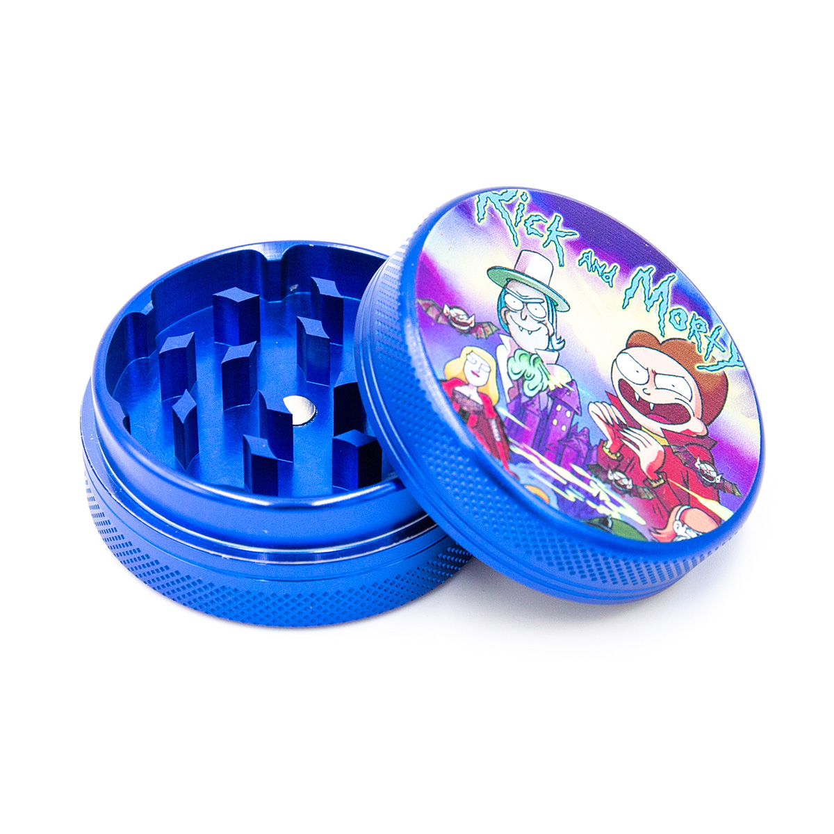 Rick and Morty Aluminium Grinder Blue 2 Parts 50mm — grinder en aluminium, 2 parties, 50mm. Livraison rapide en Suisse.