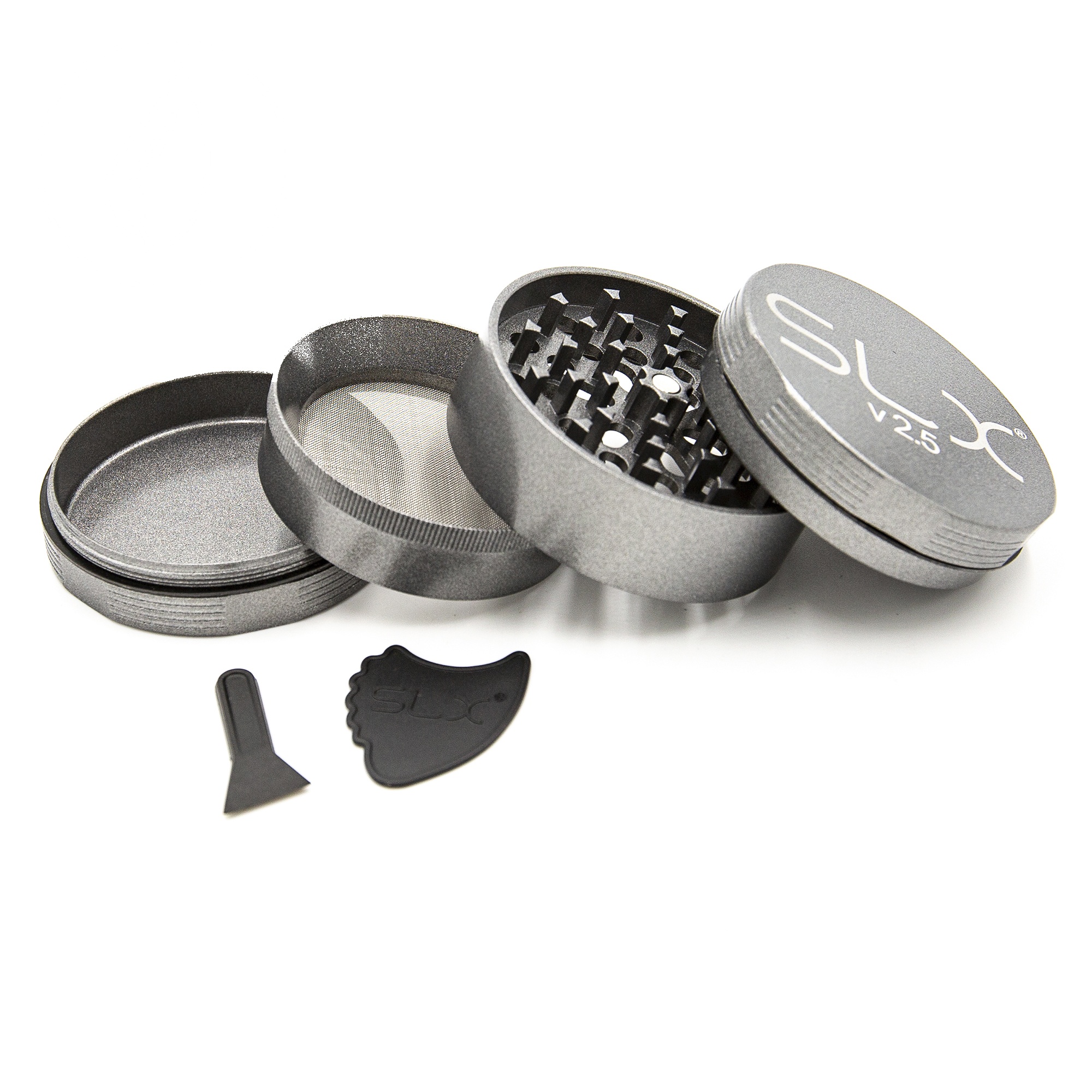 SLX Grinder V2.5 Silver 62mm — Le grinder révolutionnaire qui a transformé le marché. SLX V2.5 est le seul grinder au monde avec un revêtement céramique anti-adhésif breveté — résine, pollen et herbes ne collent jamais. Plus besoin de nettoyer, plus de résine perdue.