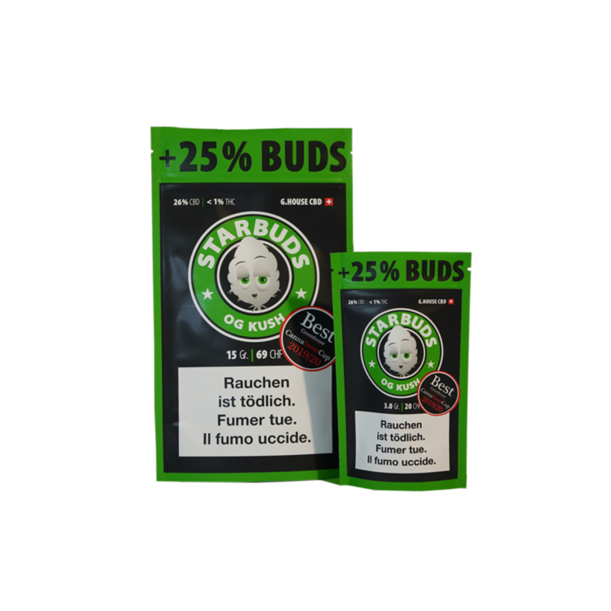 L’OG Kush de Starbuds en 3g : classique indémodable du cannabis CBD, cultivé sous serre en Suisse. Notes terreuses et boisées, touche de pin et d’épices. Un profil complexe et authentique prisé des connaisseurs.