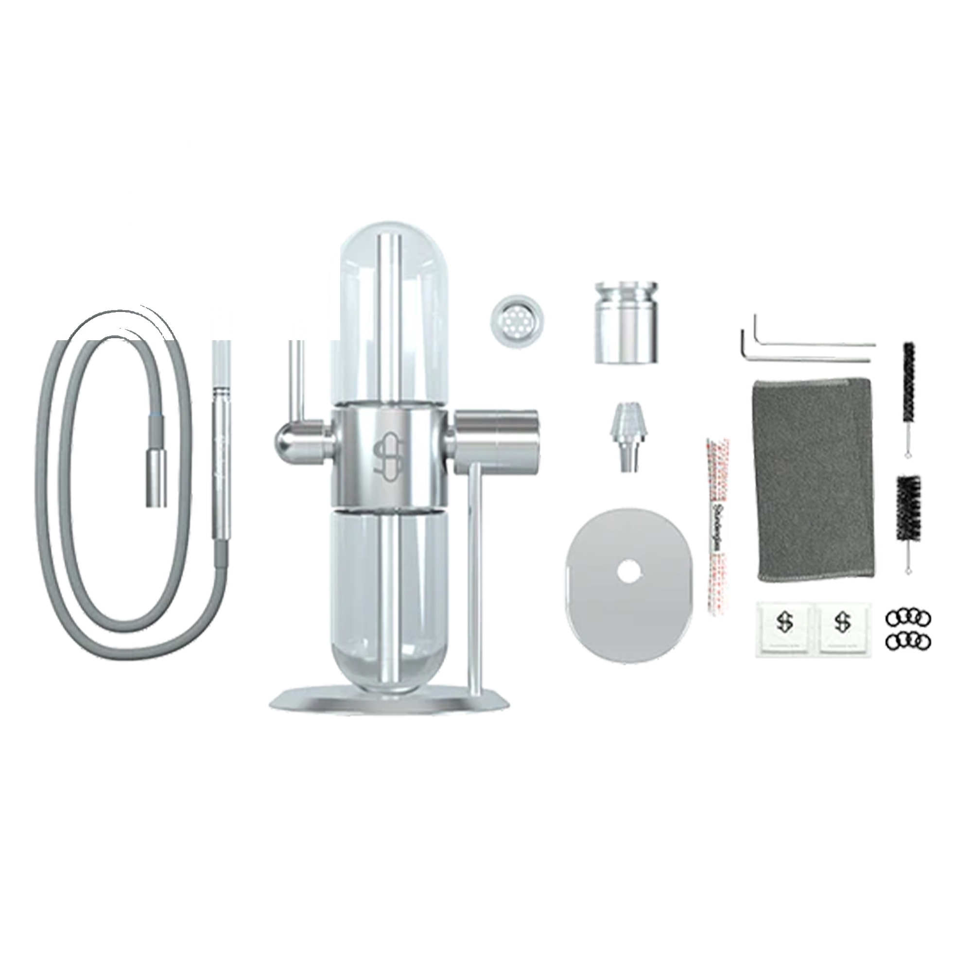 Stündenglass révolutionne l’expérience du bong avec son système de gravité 360°. Le Stündenglass Gravity Hookah Silver Polished libère une vapeur dense, fraîche et ultra-filtrée par mouvement contraire de l’eau et de l’air — sans aspiration forcée.