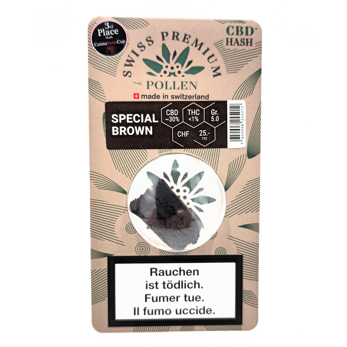 Pollen CBD Special Brown Swiss Premium 5g. Version améliorée du hash brun classique, texture onctueuse et arôme profond.