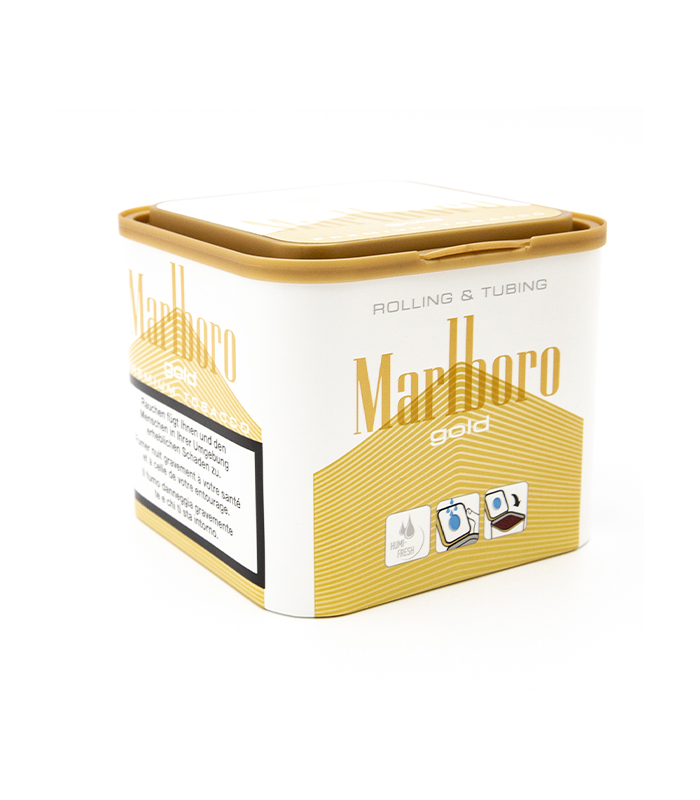 Marlboro Gold – Tabac premium à coupe fine, idéal pour roulage manuel ou à la machine. Saveur douce et bouton Humifresh pour une fraîcheur optimale.