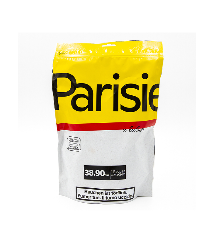Parisienne Chez Moi MYO 150g – Tabac suisse idéal pour le bourrage manuel ou mécanique. Coupe régulière, manipulation facile et goût authentique.