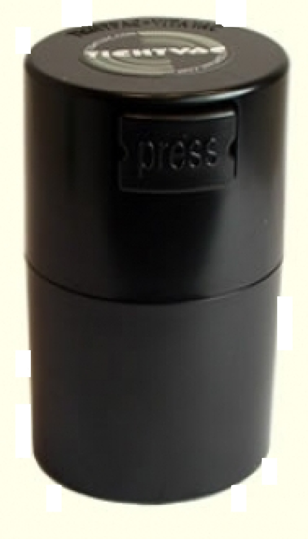 Tightvac Tightvac Vitavac Solid Black 0.06L : contenant à fermeture étanche pour conserver vos herbes, épices ou tabacs à l’abri de l’air, de la lumière et des odeurs extérieures. Joint silicone ou clip à pression selon le modèle.