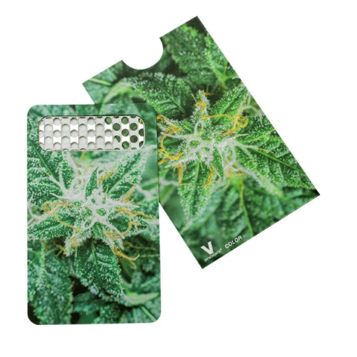 V Syndicate Grinder Card – AK47 — grinder card V Syndicate au format carte bancaire (85x50mm). V Syndicate est le créateur de la grinder card originale. En acier chirurgical inoxydable avec revêtement antiadhésif et trous découpés au laser. Les dents sont assez tranchantes pour broyer n’importe quelle herbe mais conçues pour ne pas blesser les doigts. Se glisse dans un portefeuille. Chaque modèle a un design artistique exclusif. Se nettoie d’un coup de chiffon humide.