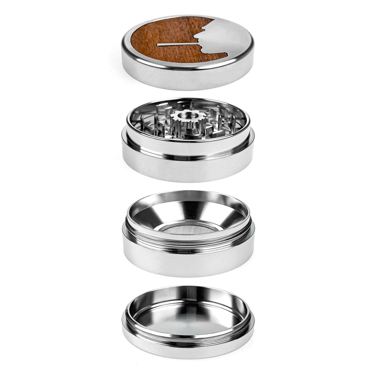 Weedo est le seul fabricant à combiner un corps en acier inoxydable 304 avec une grille en bois de noyer massif. L’inox garantit inertie et longévité, le noyer apporte chaleur et élégance. 2 tamis interchangeables (100µ et 150µ) pour adapter la finesse selon l’usage.