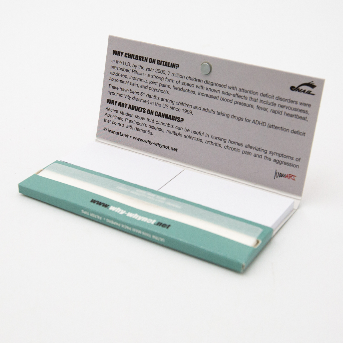 Les Why Not Rolling Paper by Ivan Art – Medicine Assorti sont des feuilles à rouler en cellulose, standard. Papier fin de couleur blanc pour une combustion lente et un goût neutre.