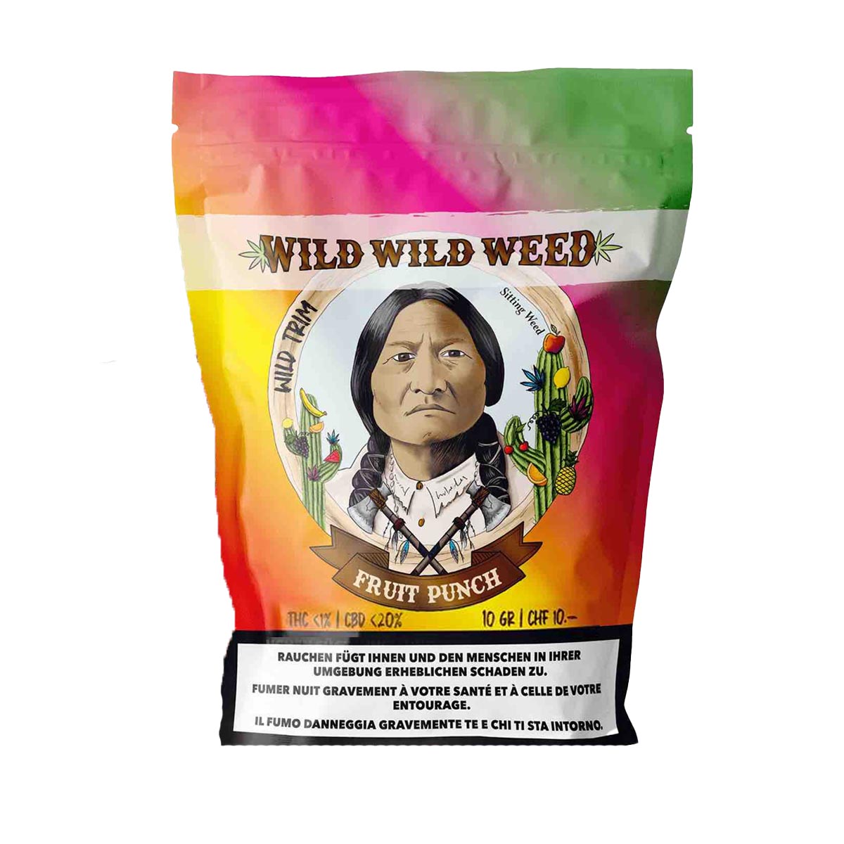 Trim CBD Fruit Punch de Wild Wild Weed — 10g de fleurs outdoor aux notes fruitées et tropicales. Idéal pour infusions relaxantes ou vaporisation à petit prix.